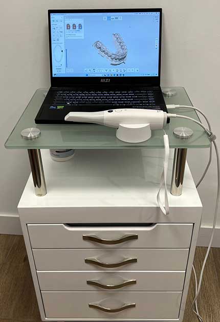 Utilizamos tecnología de última generación para tomar las medidas a nuestros pacientes. Directamente escaneamos tú boca y en 10 minutos el laboratorio está trabajando en vuestras medidas digitales.